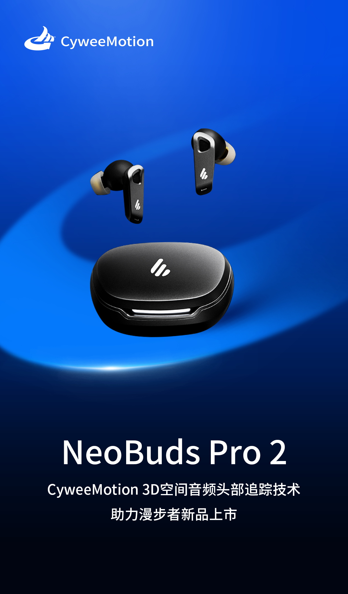 本次漫步者新品——NeoBuds Pro 2,就采用了CyweeMotion 3D空间音频头部追踪解决方案。通过3D空间音频头部追踪技术进行实时监测及方向校准,当用户头部转动时,声音的空间感也随之发生变化。用户能够真切地感受到声音的方位、距离和深度,沉浸于更加立体、真实的声音空间中,获得360°听觉盛宴。