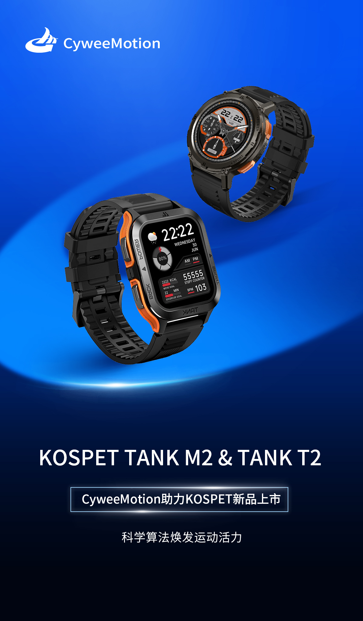 在智能算法方面,两款智能手表均结合了由KOSPET与CyweeMotion共同开发的智能运动算法,能满足用户日常生活及专业运动需求,用科学算法焕发运动活力!
