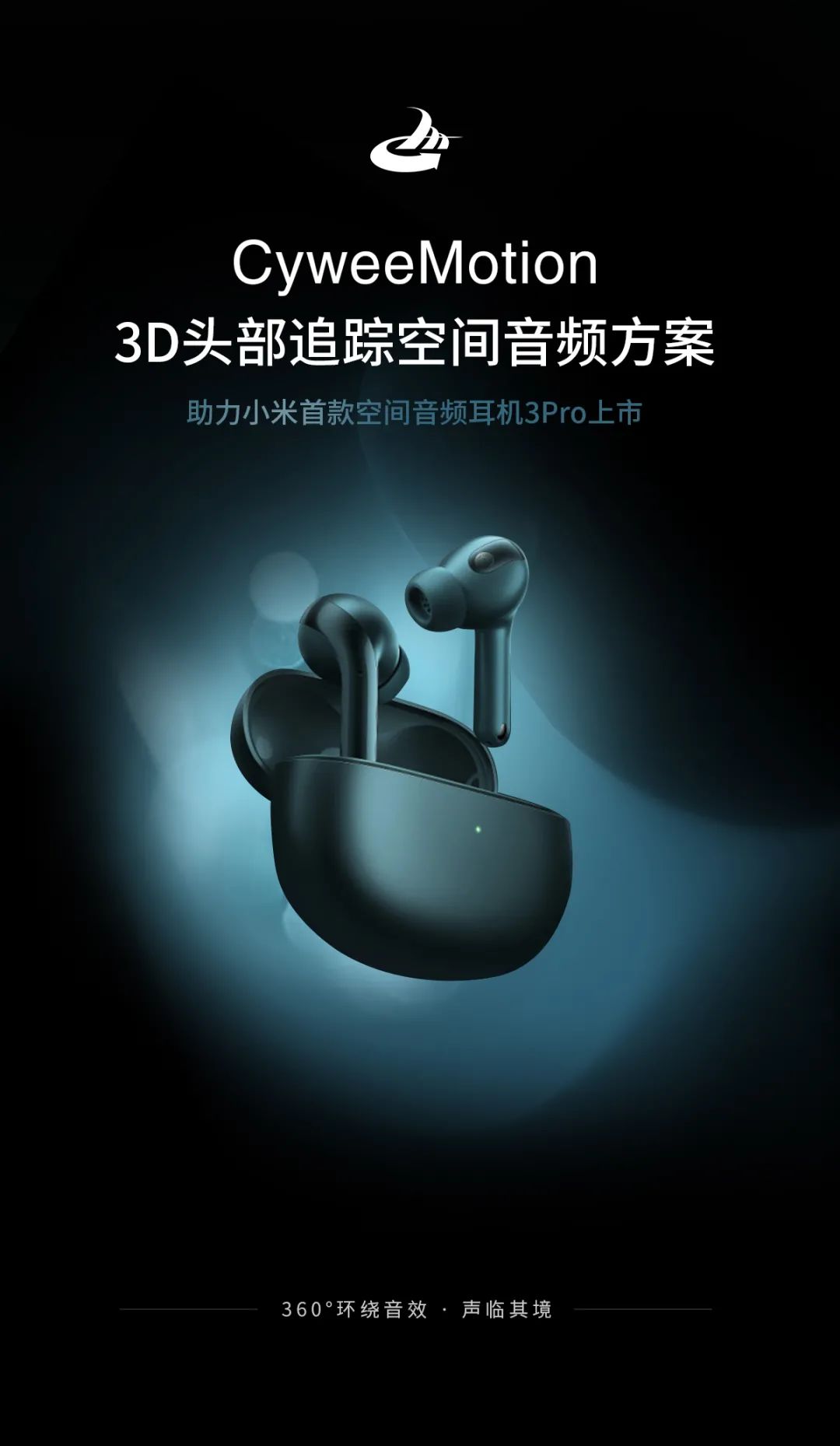 2021年9月27日,小米召开 Civi 新品发布会,除了发布最新款潮流手机Xiaomi Civi ,还正式推出首款空间音频耳机3Pro,该机型搭载CyweeMotion 3D头部追踪空间音频算法,为用户模拟立体环境音,带来全新的震撼听感。