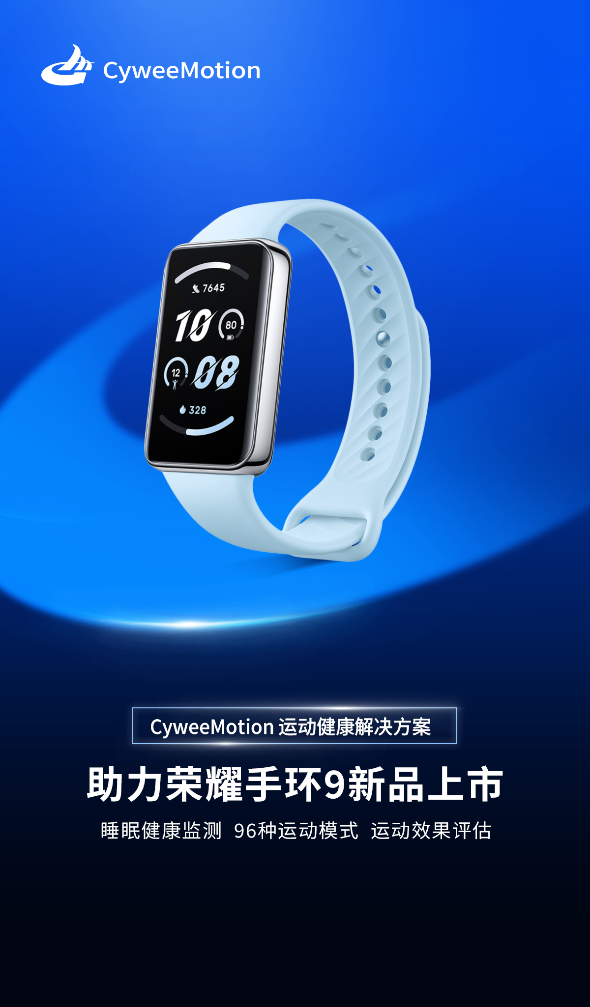 2024年3月新上市的荣耀手环9采用轻薄双曲面设计,搭载全方位健康监测功能与96种运动模式,为全球荣耀用户带来舒适的智能佩戴体验。CyweeMotion(咸兑科技)作为荣耀星耀合作伙伴,基于业内领先的AI传感器融合技术,为新品手环提供运动健康解决方案,助力用户利用智能穿戴轻松实现科学训练及健康管理。CyweeMotion(咸兑科技)为荣耀手环9提供睡眠监测、运动监测、运动智能识别、抬腕亮屏等功能,帮助用户时刻追踪记录运动及健康数据。